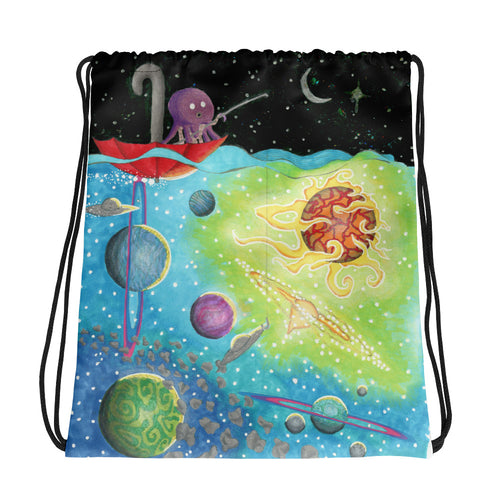 Octopus Fishing For a Spaceship Drawstring bag