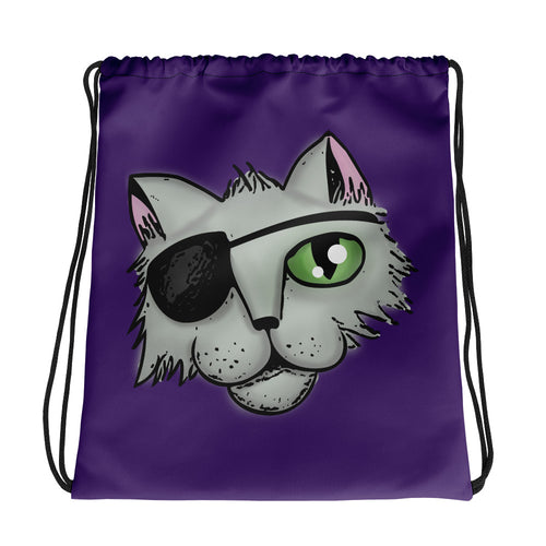 Pirate Cat Drawstring bag, Purple, Red, Black