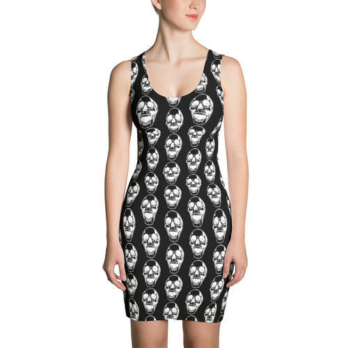 Black Goth Skull Pattern Form Fitting Dress